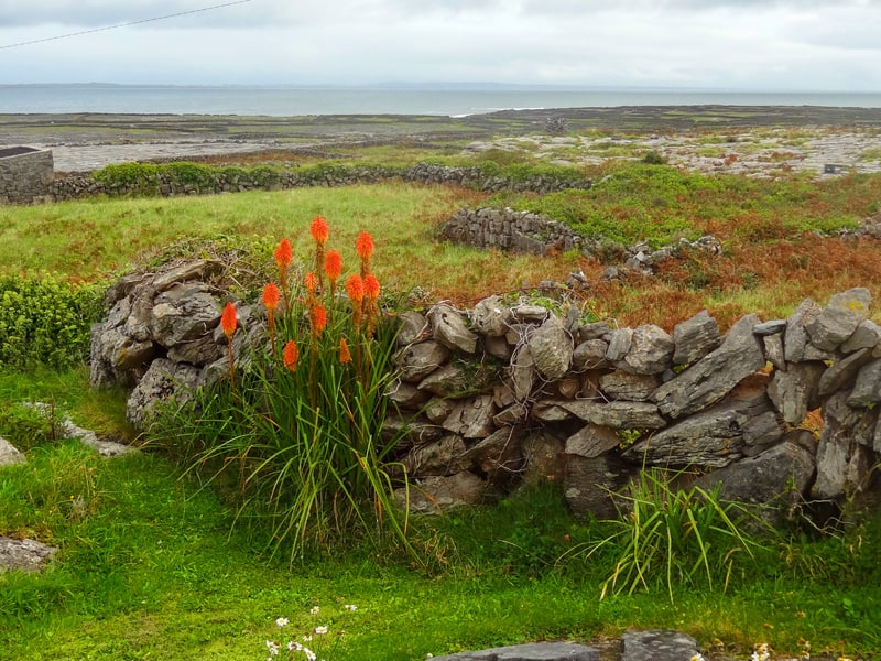 Still, when I arrived by ferry at Kilronan on Inishmore – at 2 miles by 8 miles the largest and most famous of the trio of Arans – I found the tiny village lush with bushes, trees, and ivy climbing over ancient walls.