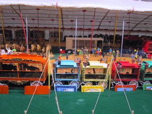 It’s fascinating and shows all aspects of the circus, from the time the train pulls into town to when the big show is over. It covers an area of 3,800 square feet and is about 1½ times the length of a football field.