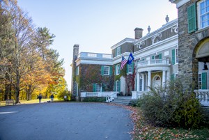 Surprisingly, its 200-some-odd acres are one-third of the original property. Situated on a bluff overlooking the Hudson River Valley, it has formal gardens, expansive manicured lawns, woodlands, and numerous auxiliary buildings.