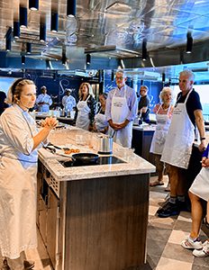 Sandra joined a tour of a spice farm where the two chefs from the Culinary Arts Kitchen collected spices for a hands-on cooking class back on the ship. Guests prepared prawn biryani with garam masala, white pepper crepes, and cardamom ice cream. In the meantime, John visited a typical Mayan village off the grid where a chocolate maker showed how cacao beans were harvested and turned into popular sweet treats.