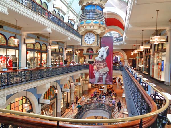On our final day in Sydney, before leaving for the Hunter Valley, we found QT’s central location to be ideal. Just next door is the Queen Victoria Building, finished in 1898 as a Grand Market. After several renovations, it’s continuing in that tradition today. It’s also probably the best example in the world of a grand retail building from the Victorian era. It has six levels of shopping, mostly high end.