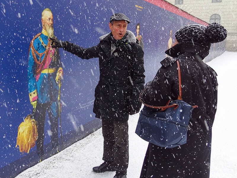 Continuing along, Peter explained that although there are a lot of construction sites in Munich, they do provide a benefit. Steering us to a nearby site he showed us where the fence had been transformed into a canvas. All along it were painted portraits of different Bavarian rulers and monarchs. It was an interesting history lesson.