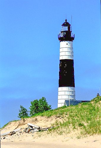 The plates have done well, and the tower has remained solid for a century. It is white with a broad black middle section to make it more distinctive as a day mark. Surrounded by shifting dunes, Big Sable is one of the most scenic light stations in the country. For travel information, visit www.michigan.gov/dnr.